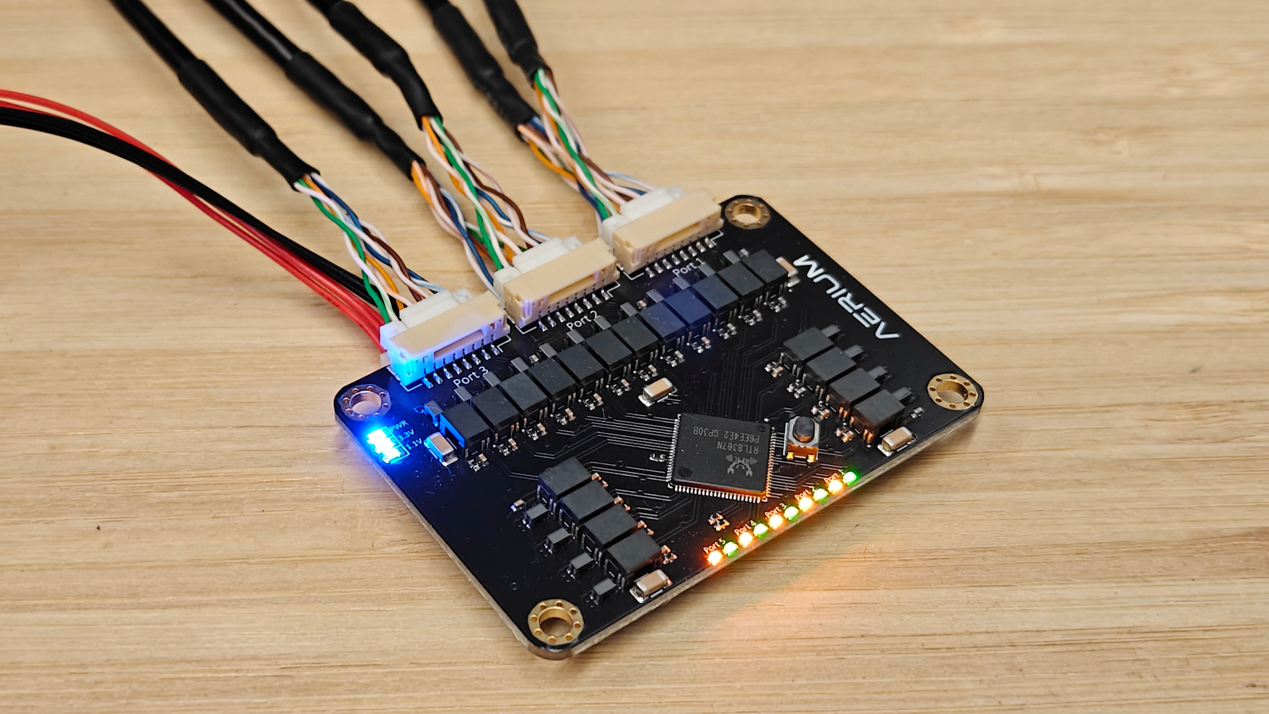 The Aerium Flux switch delivers 10/100/1000 Mbps Ethernet performance across five full Gigabit ports, providing fast, seamless wired connectivity for home offices, small businesses, and industrial deployments.